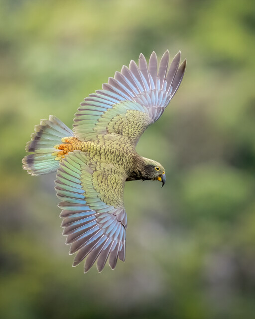 Taken in the Alpine heights of Arthurs Pass this juvenile Kea was flying in to try and score some food from some unsuspecting tourists.