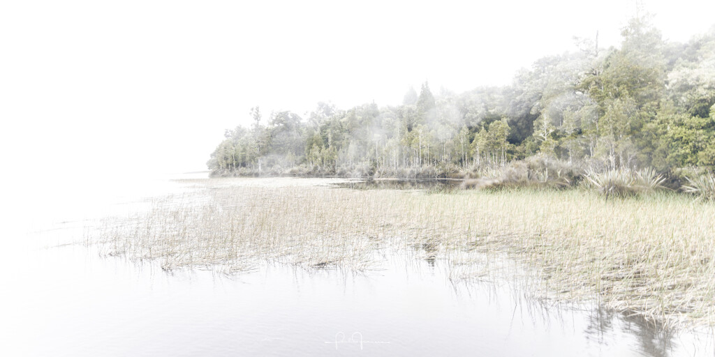 The calm and tranquil Lake Mahinapua. Through the wonderful drive down to the lake through the trees you walk down to a bastion of peace and solitude broken only by the sound of the birds. This shot taken on a foggy morning from the jetty showing the beauty of the West Coast for all to see.